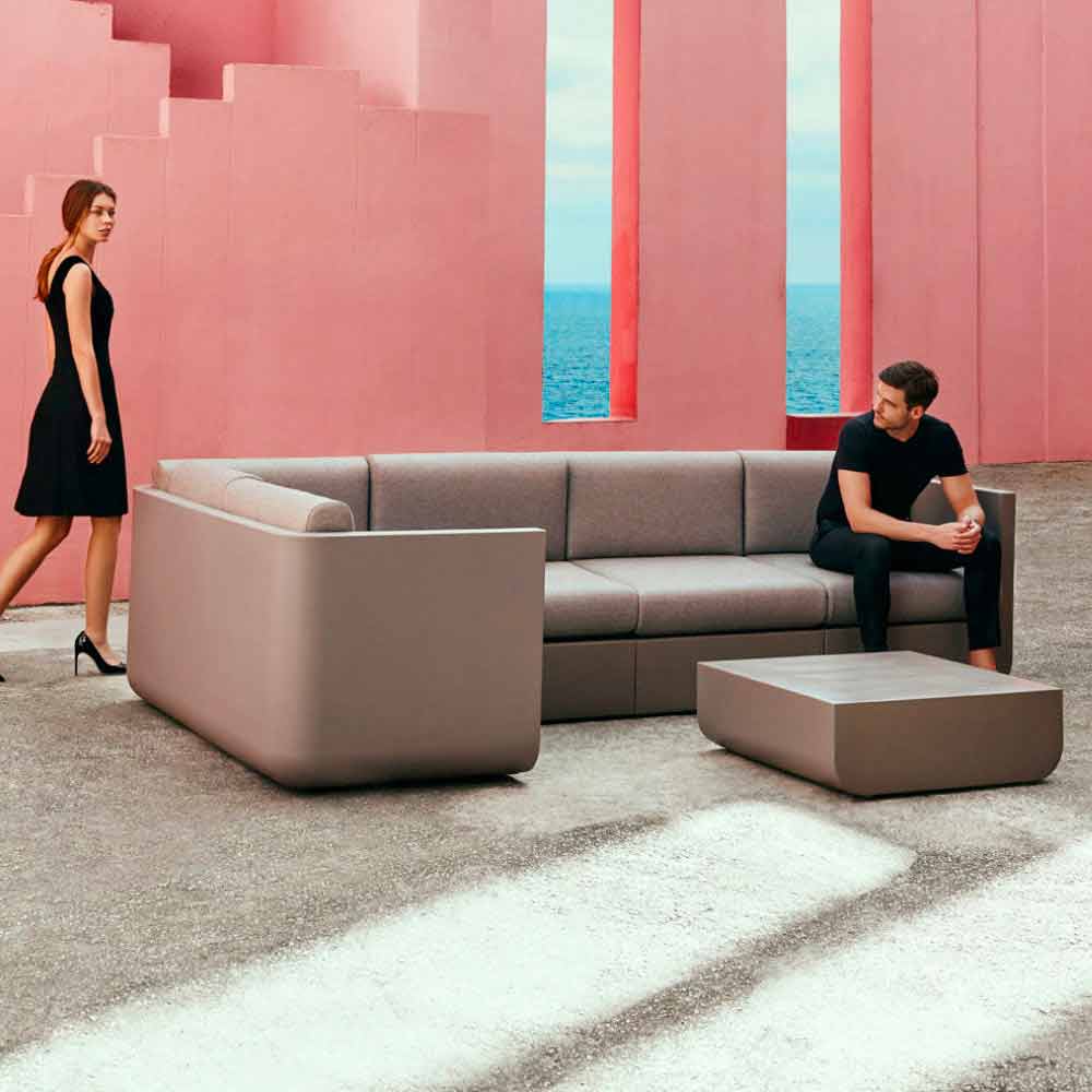 Ulm av Vondom trädgårdslounge gjord av polyeten med en dubbelvägg rotationsform. 100% återvinningsbar. Taupe.
