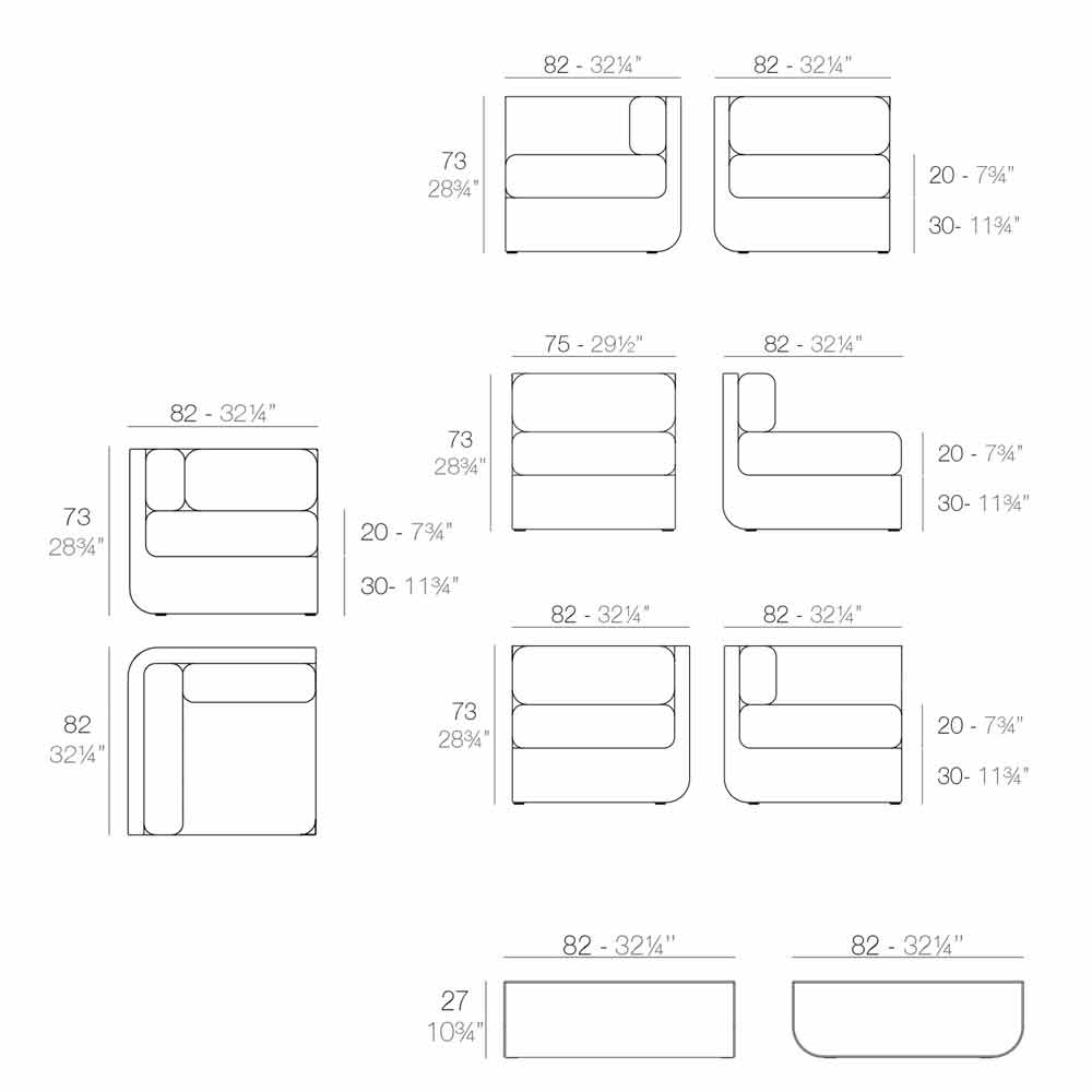 - 1 vänster modul L81.5 x P81.5 x H72 cm;