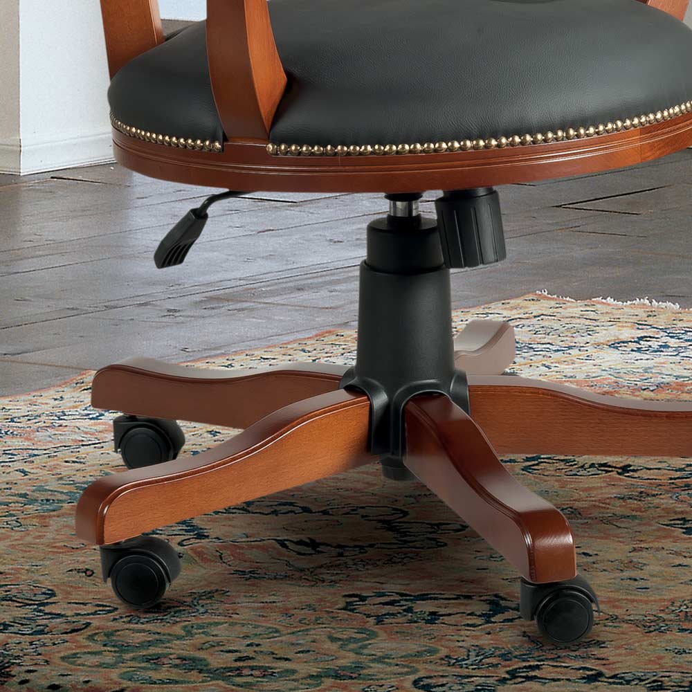 klädd i eko-läder . Förfinad och tidlös, denna fåtölj är idealisk för att ge en exklusiv touch till kontoret eller till vilken miljö den är placerad i. Helt